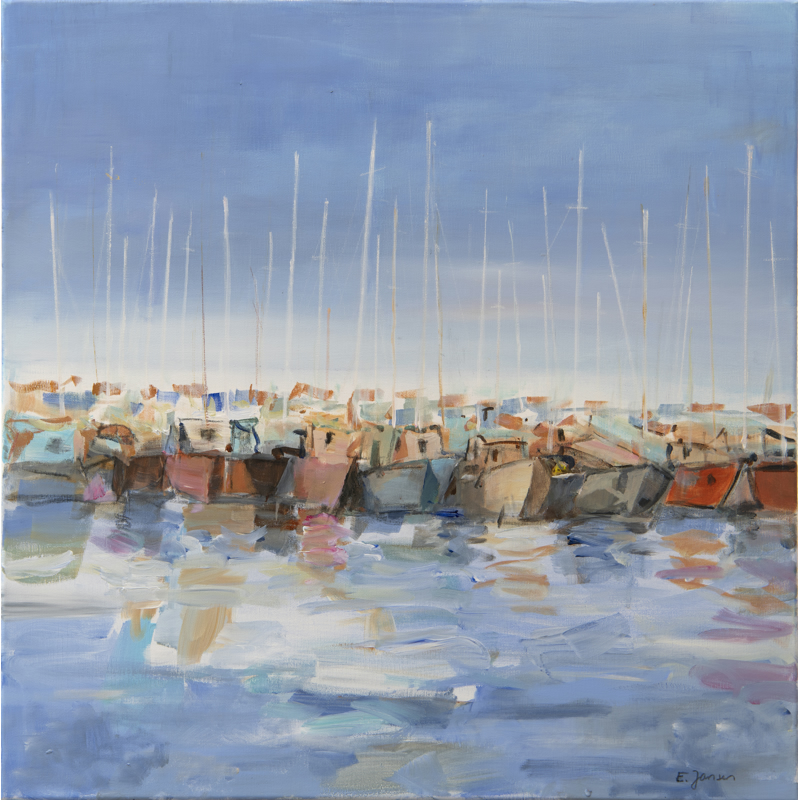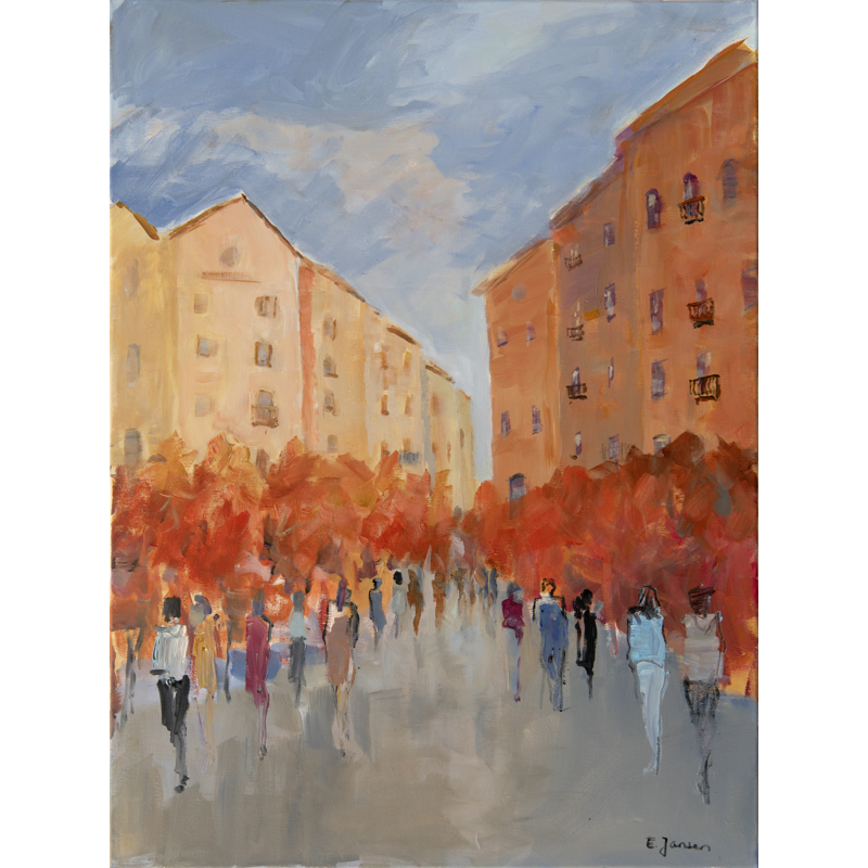 Seit einigen Jahren nehme ich regelmässig Fortbildungskurse für freies Malen. Ich liebe kräftige Farben und die Leute müssen sich auf meinen Bildern bewegen.